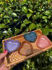 Keep your small treasures safe and stylish with our handcrafted resin trinket dishes. Available in heart and square shapes, each dish is uniquely poured with shimmering details and a glossy finish. Perfect for holding jewelry, or little keepsakes, these dishes make a lovely addition to any vanity, dresser, or nightstand.